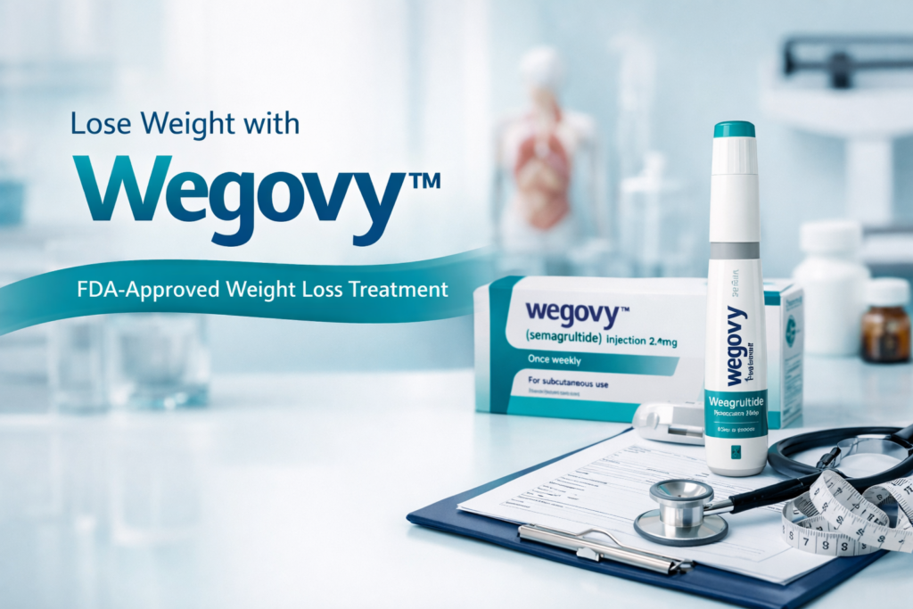 Wegovy is an FDA-approved medication for chronic weight management. It contains semaglutide, a GLP-1 medication that helps regulate appetite, blood sugar, and metabolism.
